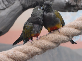 Большинство попугаев - древесные птицы и живут в лесах, реже на открытых пространствах, немногие виды проникают высоко в горы. Представители этого отряда птиц распространены главным образом в тропиках и субтропиках. У многих из них хорошая память и способность к звукоподражанию. Большие полушария головного мозга у попугаев крупнее, чем у других птиц, их даже называют приматами среди птиц из-за их высокого интеллекта. Питаются попугаи преимущественно растительной пищей: плодами и семенами растений; некоторые виды - пыльцой и нектаром. Однако, при случае они готовы полакомиться и животной пищей — насекомыми и их личинками, червями, а попугаи кеа даже падалью.