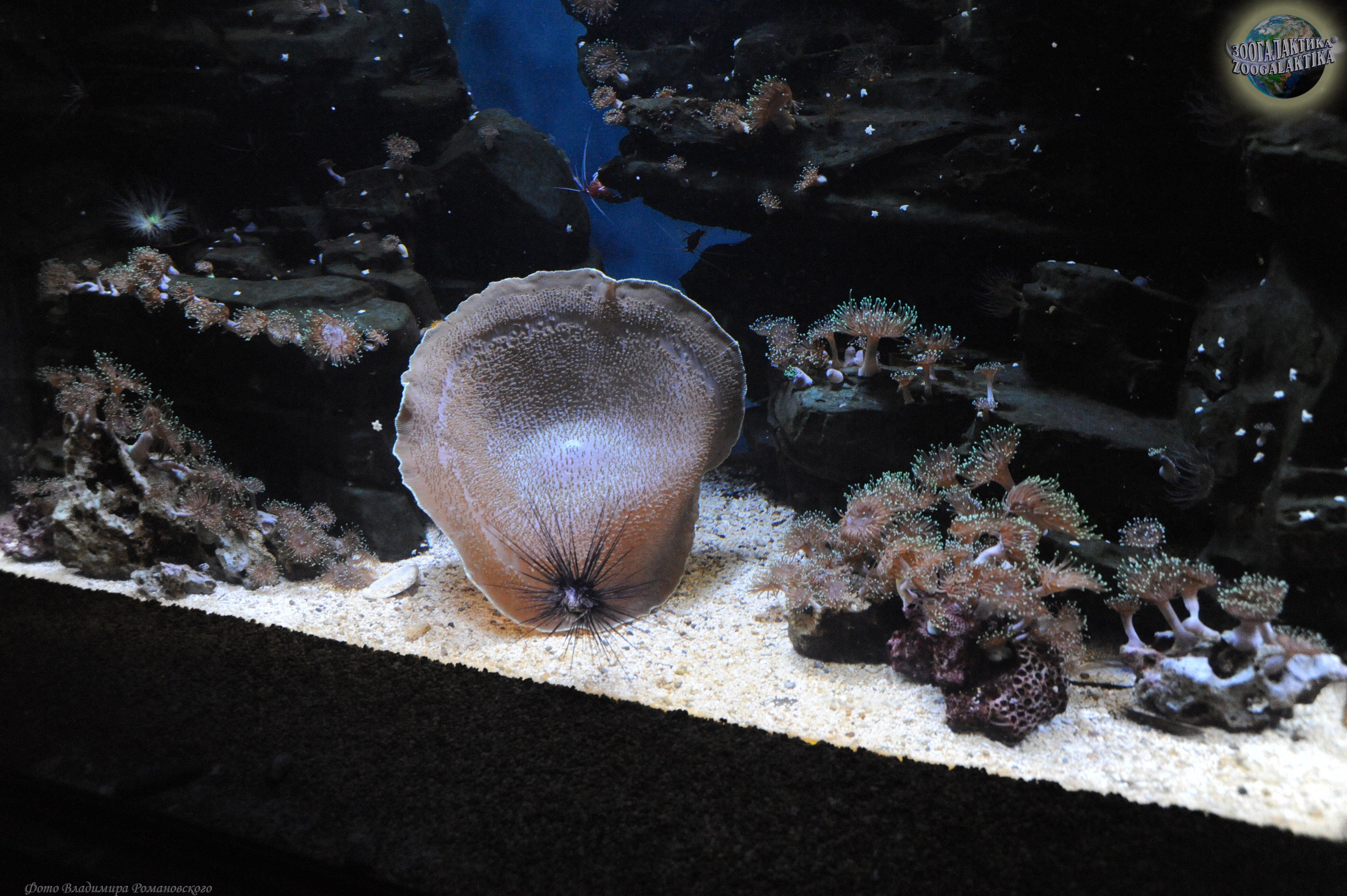 Этих гигантов среди дискоактиний называют "слоновые уши" или "гигантские грибы". Широкий ротовой диск этих актиний покрыт небольшими вытянутыми щупальцами, в центре диска располагается сравнительно крупное ротовое отверстие. Окраска у них очень разнообразная: сиреневая, фиолетовая, зеленая, коричневая и т.д., максимальный размер - до 40 см в диаметре. Распространены слоновые уши в Западной части Тихого океана, в акватории островов Индонезии и на Большом Барьерном Рифе, где населяют мелководные участки коралловых рифов. Держатся «уши» преимущественно на отмерших мадрепоровых кораллах, каменистых участках или реже на песчаном дне. Эти поражающие воображение организмы – хищники. Зоологи предполагают, что они используют одурманивающий запах для привлечения рыб. Когда ничего не подозревающая жертва приближается к полипу вплотную, актиния захватывает ее, смыкая края ротового диска. Ловушка медленно закрывается вокруг рыбы, как бы заключая ее в огромный шар, и у жертвы практически не остается шансов на спасение. Рыба умерщвляются стрекательными клетками, а затем переваривается. Кроме того, значительную часть питательных веществ амплексидискусы получают другим способом: от симбиотических зооксантелл. Однако для нормального роста и развития при содержании в аквариуме им необходимы регулярные подкормки зоопланктоном, мелко нарубленным мясом креветок, моллюсков или рыбы.
