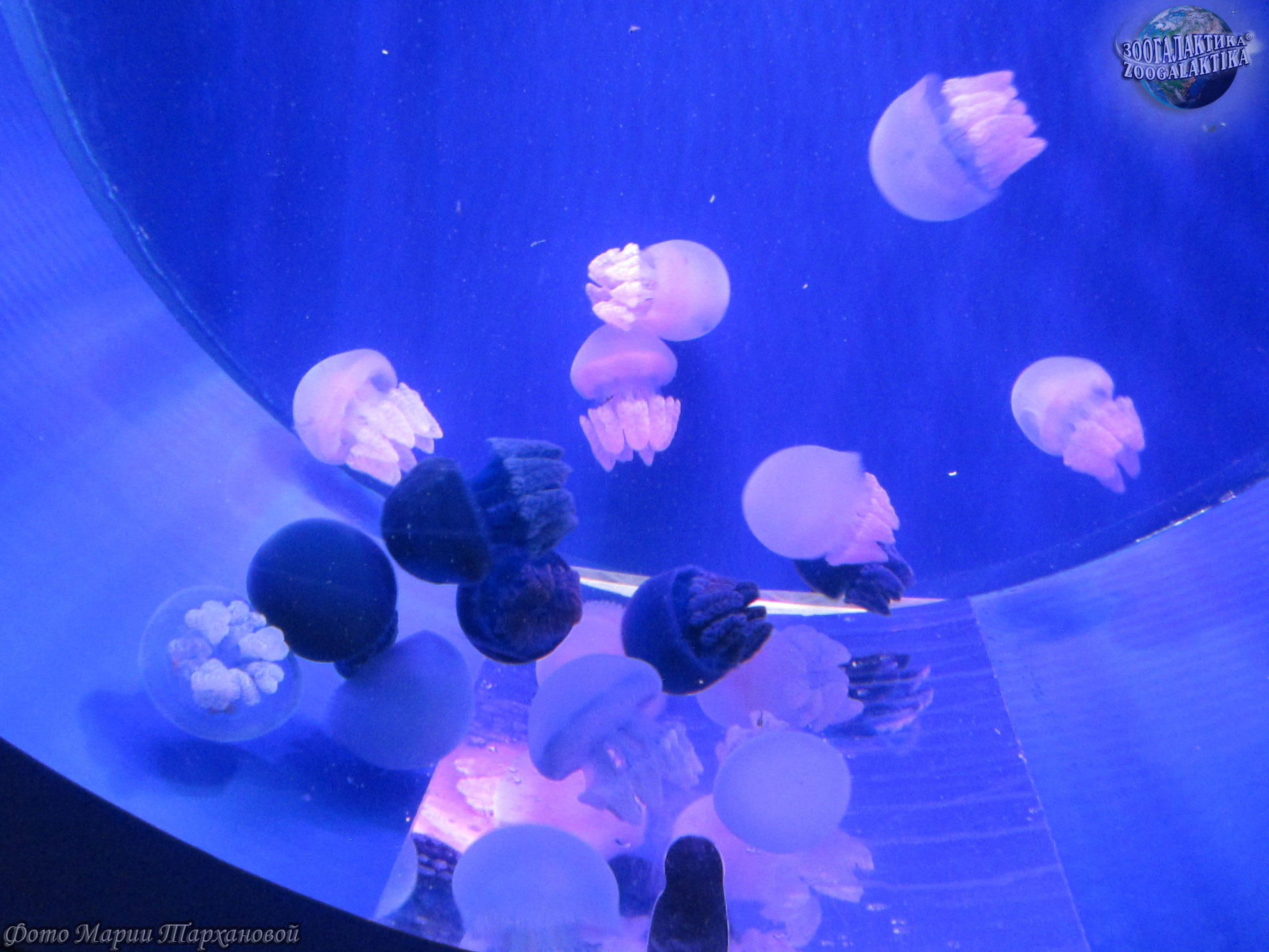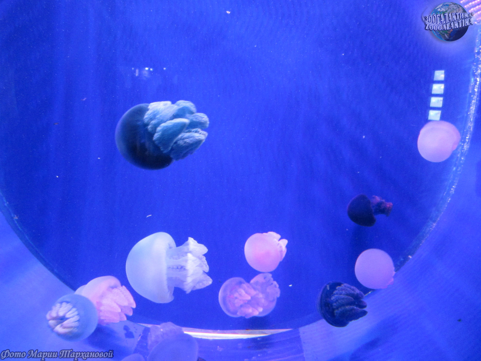 В аквариумах содержат в основном подвид этой медузы — золотую медузу, которая живёт в солоноватых водах озёр острова Палау.