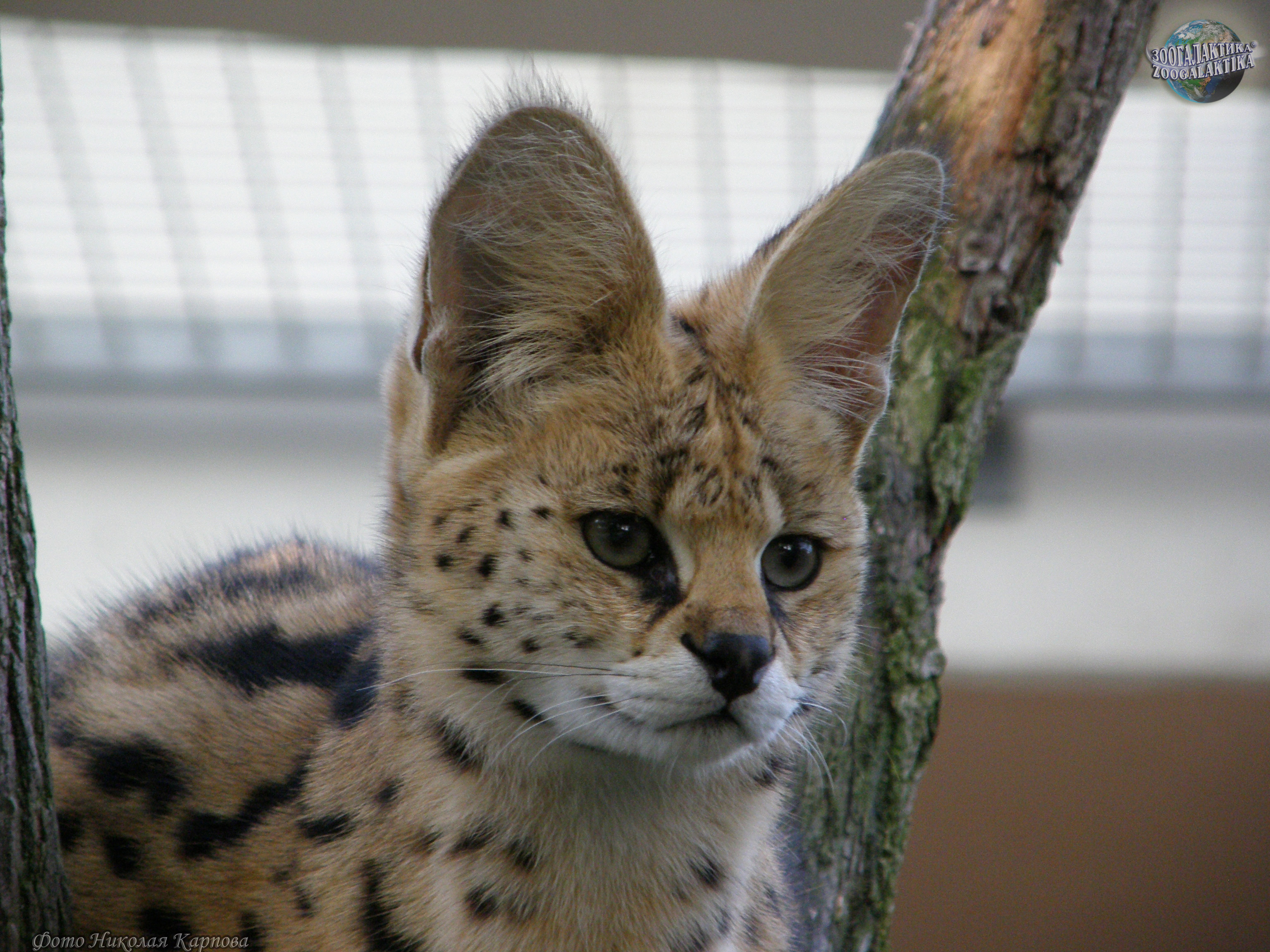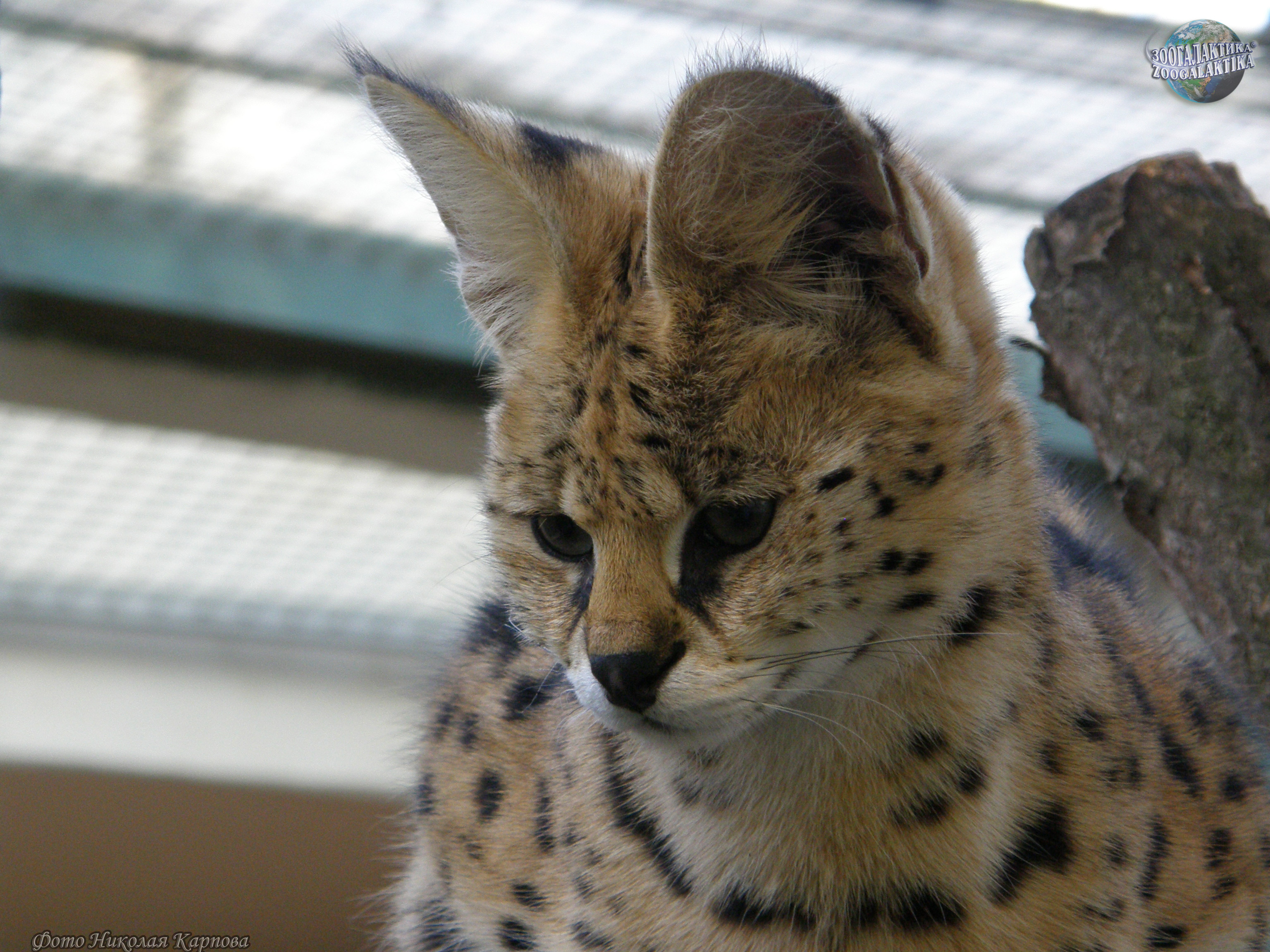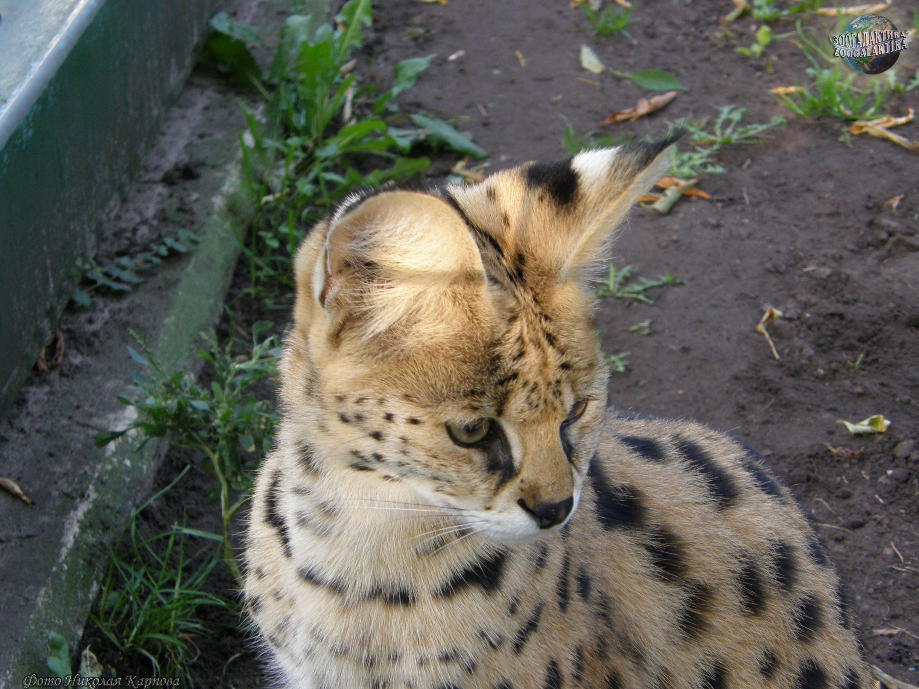 Сервал, или кустарниковая кошка (Leptailurus serval) - стройная, длинноногая кошка средних размеров. Длина его тела 65-100 см, высота в холке до 60 см; а вес всего около 20 кг. Внешний вид сервала довольно специфичен: у него самые высокие ноги и большие уши (относительно размеров тела) среди кошачьих. А вот голова у него непропорционально маленькая, да и хвост довольно короткий (25-40 см). По ряду морфологических особенностей сервал считается близким родичем рысей и каракала, хотя окраской он больше всего напоминает гепарда. Благодаря длинной шее, обитатель джунглей и саванн Марокко, Туниса и Южной Африки, сервал у себя на родине получил название - «кошка-жираф», красноречиво говорящее о его телосложении. Светло-коричневая шерсть сервала с темными пятнами - прекрасный камуфляж, чтобы оставаться практически невидимым среди выгоревшей под палящим солнцем саванной растительности. Каждый сервал - обладатель уникального, только ему присущего узора на шерсти. Еще одна особенность его окраса - белые полоски на задней стороне ушей. Зоологи считают, что эти похожие на глаза белые пятна, выступающие над поверхностью травы, помогают неопытным малышам, вышедшим на охоту вместе с матерью, не потерять ее из виду.