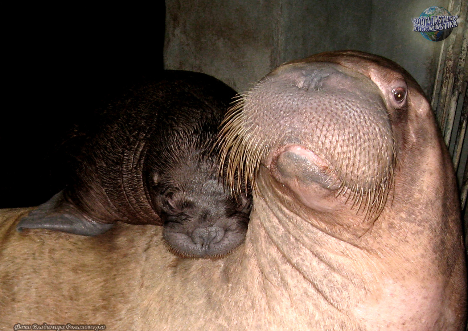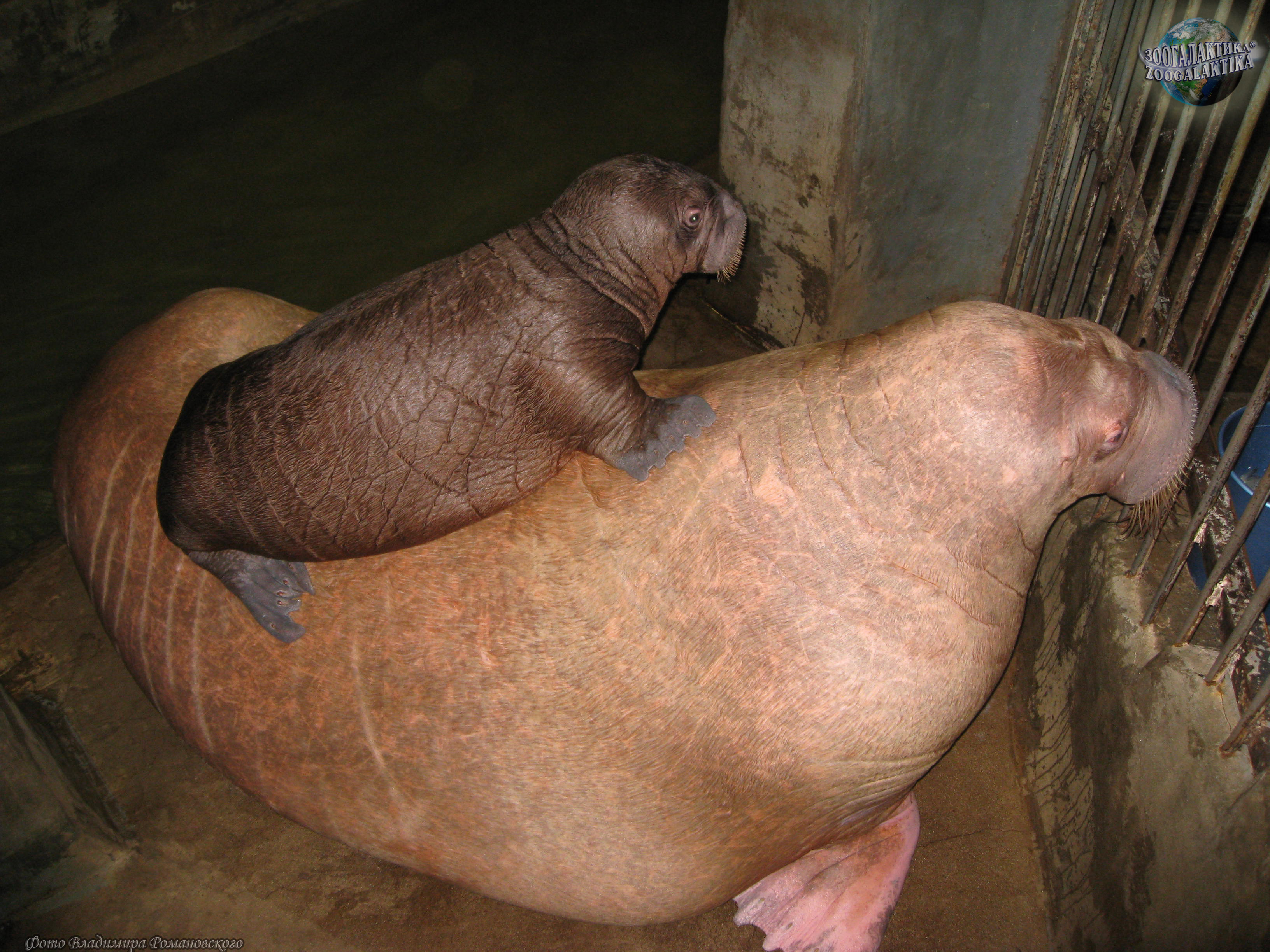 Темп размножения у моржей чрезвычайно низкий. Беременность у них длится до 16 месяцев, а рожает самка только одного детеныша длиной около 1 м и весом 60 кг раз в 3-4 года. Окраска у моржонка более темная, чем у взрослых моржей. Самка очень привязана к своему детенышу и всегда активно его защищает. Малыш с первых дней жизни умеет плавать и в случае опасности покидает льдину вместе с матерью. Если же детеныш по какой-то причине не может этого сделать, мать остается рядом с ним, даже если ей угрожает смертельная опасность. Если моржонок устает, мать нередко «катает» его на спине. Даже научившись плавать, моржата не отказываются от такого замечательного транспорта и продолжают ездить у матери на спине или загривке, держась за нее ластами. Самка кормит детеныша молоком очень долго - до двух лет. Только когда у моржонка появляются длинные бивни, он переходит к самостоятельному питанию, но продолжает поддерживать связь с матерью еще около года.